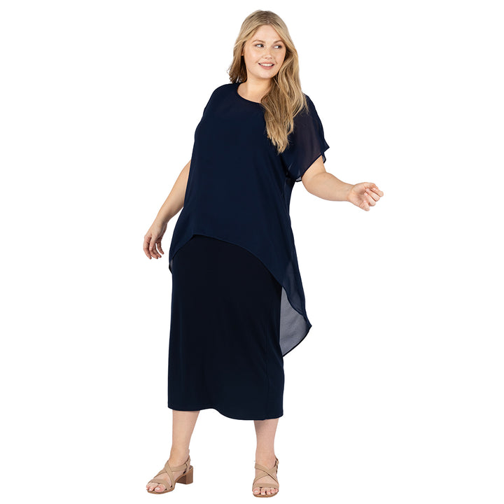RTM1964-Plain Chiffon Overlay Top